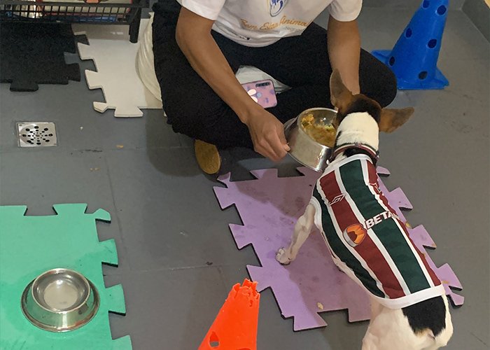 Socialização e Diversão Segura Animais livres e socializados sob a supervisão constante de uma equipe com adestrador e veterinário.